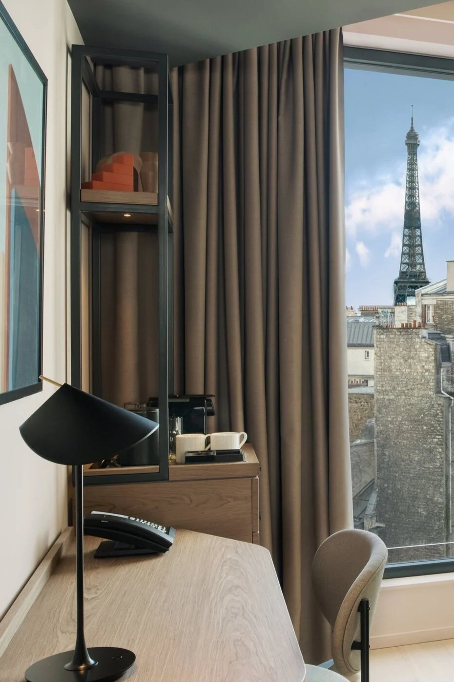 La façade année 30 de cette ancienne usine électrique, abrite désormais 123 chambres, un espace de restauration, un bar à cocktail et un rooftop offrant un point de vue d’exception sur la tour Eiffel et la canopée parisienne. La décoration de cet établissement s’inspire de l’ambiance effervescente et créative du quartier, du caractère érudit et raffiné parisien, autant que du passé industriel du bâtiment au style art déco.