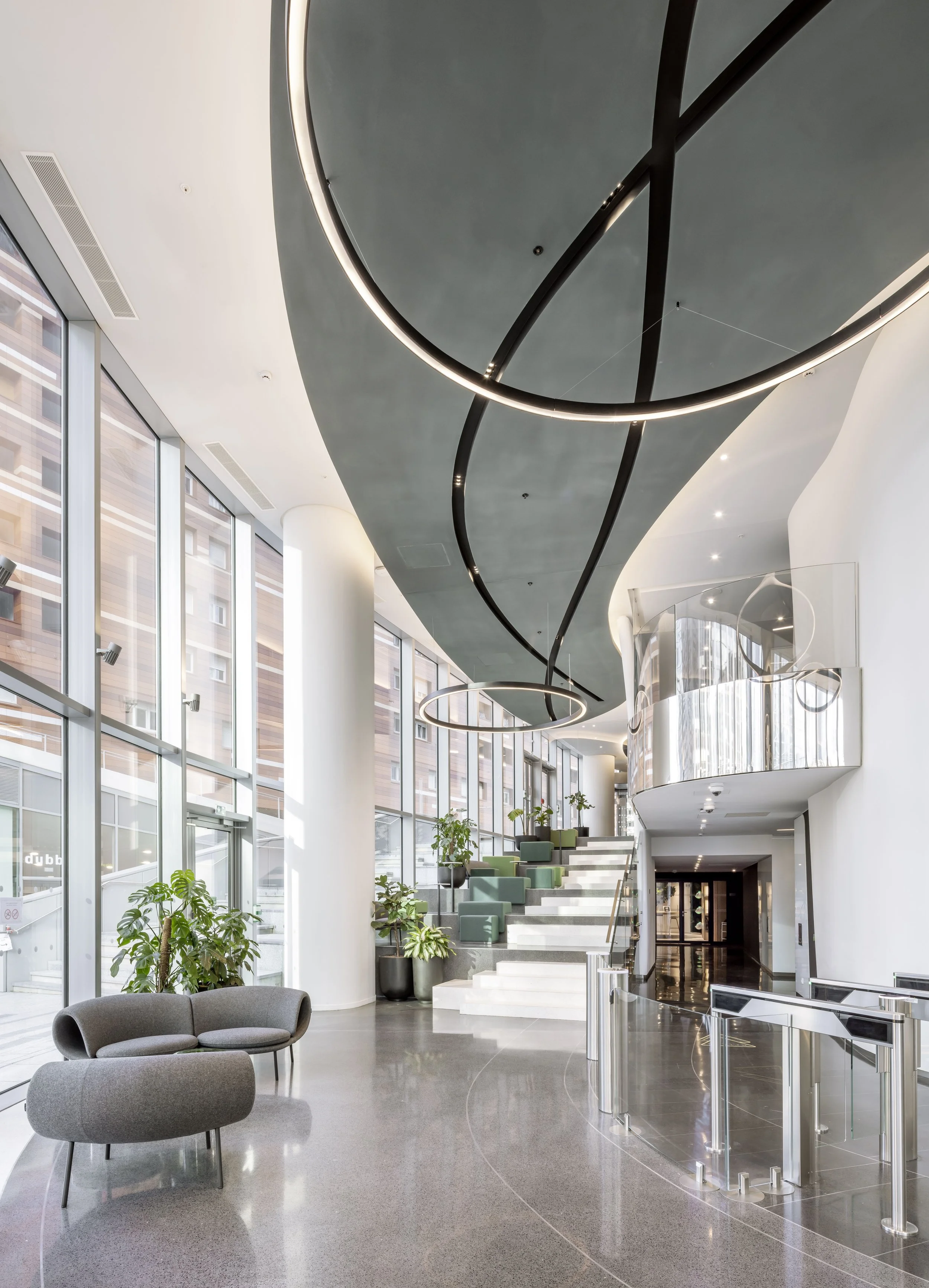 Conception des espaces communs d’une tour de bureau de 37 étages dont l’architecture du bâtiment est signé par IF Architecture.